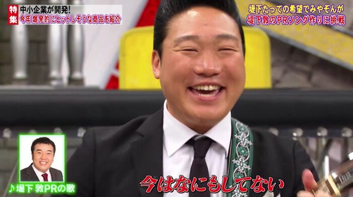 しかし、曲の最後にみやぞんさんが「(堤下さんは)♪今は~何もぉしてない」と、辛口なフレーズをぶっこみ一同大笑い。