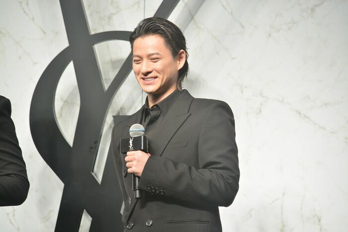 イヴ・サンローラン・ボーテ事業部長のジャロン・チャンさんから、"時代のアイコン"と紹介された平野さんは、シックなブラックスーツで登場し、「未だ誰も見たことがない景色を作り上げていきたい」とあいさつしました。