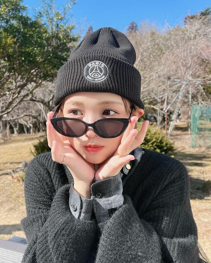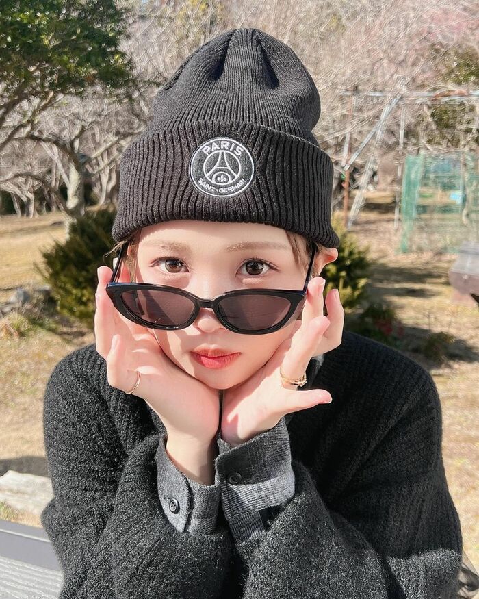 るなさんは、今回の投稿で「23歳も全力で生きます!」とコメントし、自然に囲まれた広場のような場所で、黒いニット帽に黒いサングラス、そしてダークグレーのニットとグレーのシャツを重ね着したモノトーンコーデのショットを披露。