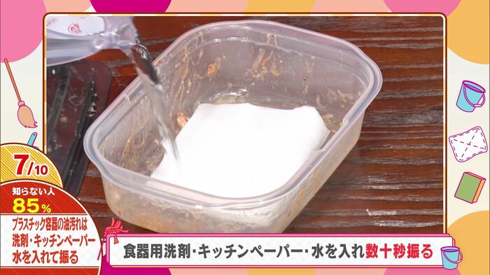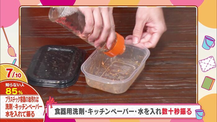 プラスチック容器の油汚れは「キッチンペーパー」で