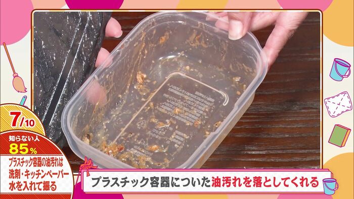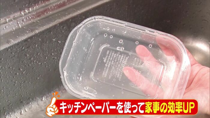 この他にも、プラスチック容器についたしつこい油汚れはキッチンペーパーで簡単に落とせるんです。