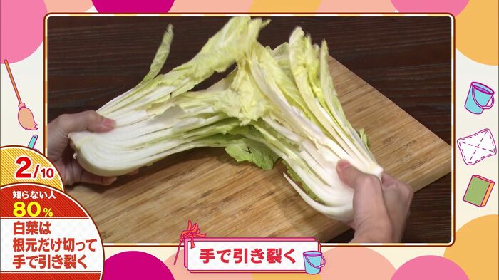 これだけで、葉先までキレイに裂けて、バラバラになりにくくなります。鍋料理の準備が格段にスピードアップし、キッチンも散らかりません。冬の定番料理である白菜鍋やミルフィーユ鍋の準備が、今までよりずっと楽しくなりそう!