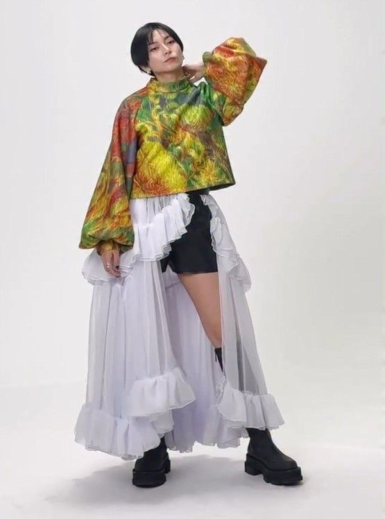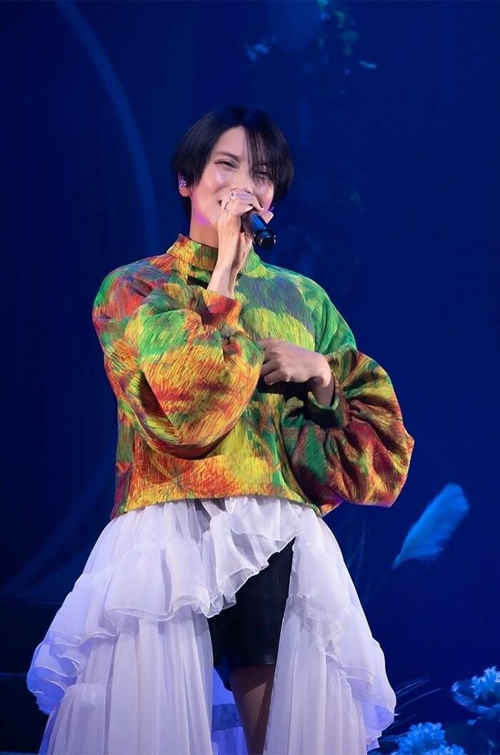 公開された写真では、カラフルな柄のトップスと黒のショートパンツに、白いチュールが足元まで伸びた衣装姿で、ステージに立っている柴咲さんの姿が!