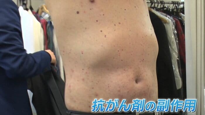 本番直前の楽屋では、山川さんが抗がん剤の副作用で出ているという体中の発疹を見せてくれました。
