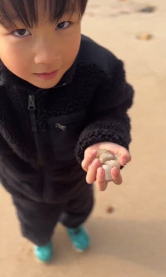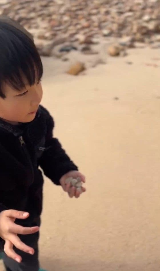 ある日、家族で海に行ったときには、砂浜で何かを拾いながら歩いているかおくんの手元を見ると…