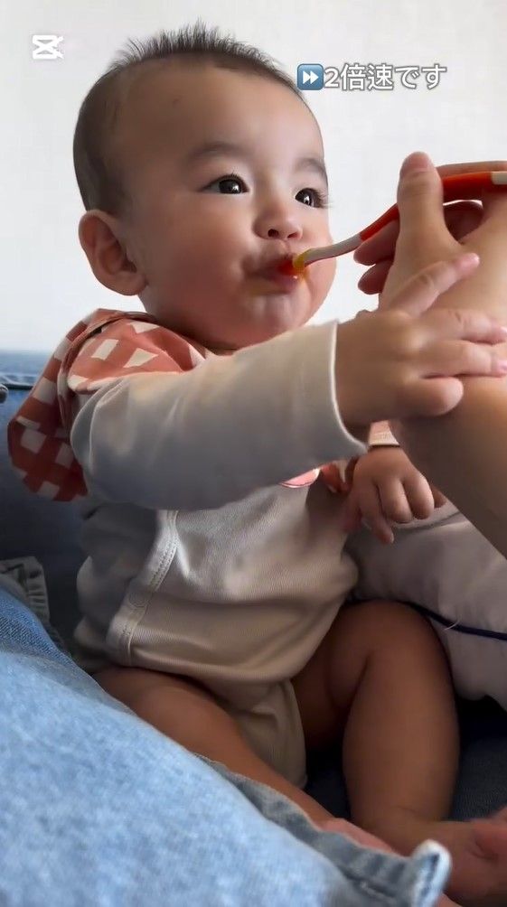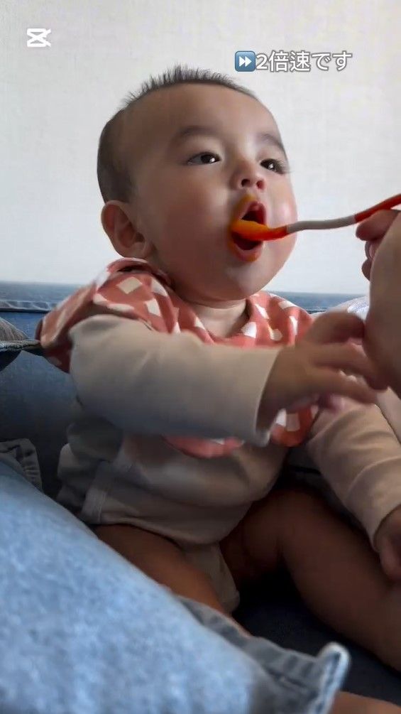 蜂谷さんは今回の投稿で「美味しそうにパクパク食べてくれて、嬉しい」とコメントし、長男が離乳食を食べている様子の動画を公開しました。