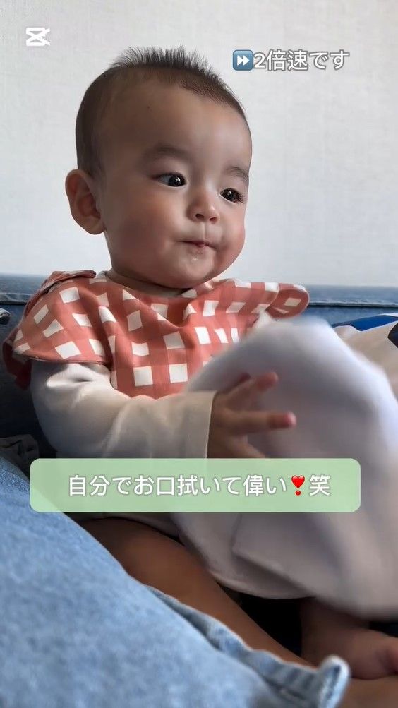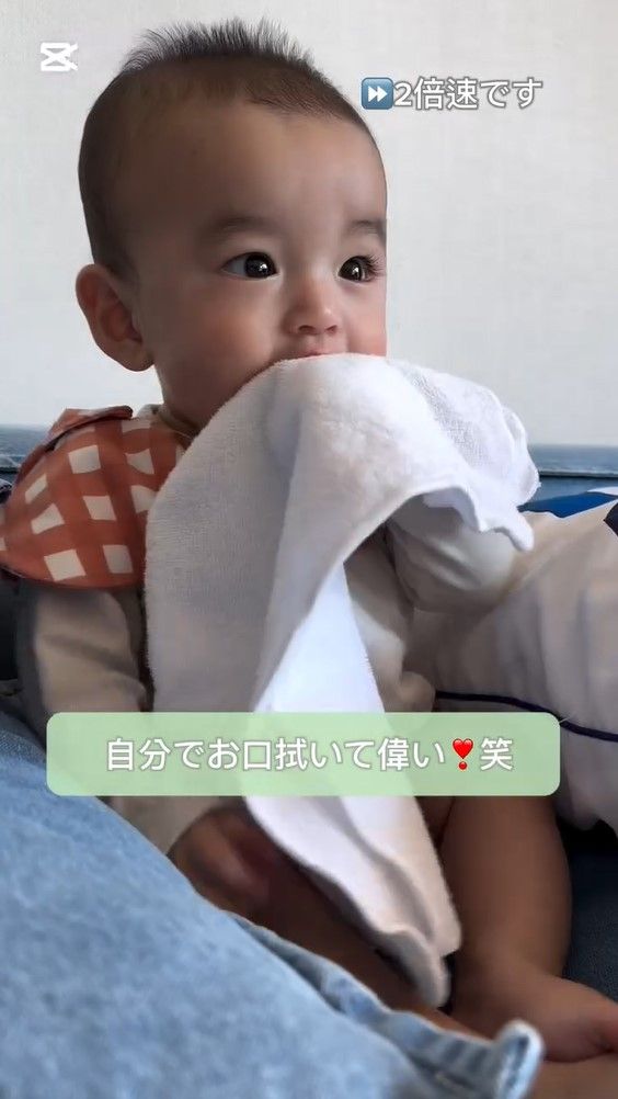 さらに、手元にあったタオルで自ら口を拭く行動に蜂谷さんは「自分でお口拭いて偉い!笑」と動画内でコメント。