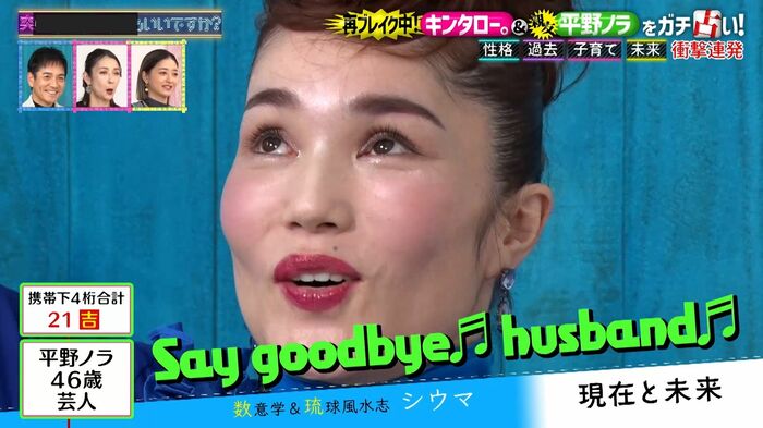 ノラさんも2025年は運気が非常に良く、一番のモテ期が到来するそうで、ノラさんは「Say goodbye husband(さようなら、夫)♪」と上機嫌。