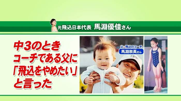 馬淵も「中3で飛込をやめたいと本気で父親に言ったことがある」と告白。彼女は、小4から「楽しむ」ではなく「強くなる」ための練習が始まり、親の期待に応えたい一心で恐怖心と戦っていたという。
