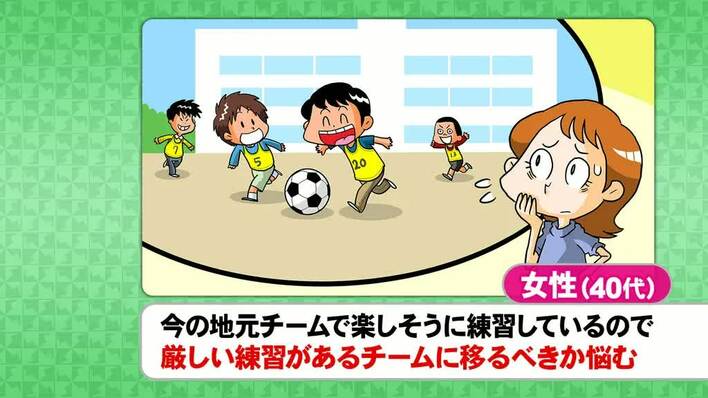 「子供のスポーツ力、どう伸ばす?」というテーマでは、「地元のサッカーチームに所属している小3の息子が、プロチームが運営するスクールに誘われた。本人はやる気だが、練習が厳しいチームに行って大丈夫か、心配」という40代女性のお悩みが登場。視聴者の意見を募る「せきらら投票」で、そんな母親の気持ちを理解できるかどうか調査した。