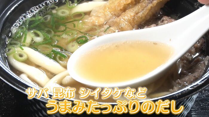 特徴はサバや昆布、シイタケなどからとった旨味たっぷりのだしに、柔らかくもっちりした麺。
