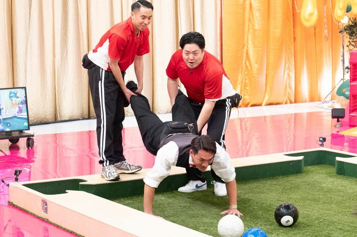 「ビリビリッカー」に挑むのは、槙野さんと、学生時代にサッカーで全国大会出場経験のある生ファラオ・石川さん。新感覚スポーツでガチバトルを繰り広げます。