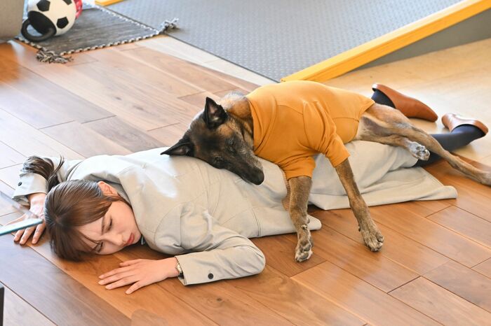 まるで金縛りにあっているかのように苦悶(くもん)する若宮恵美子(内田理央)……その背中の上には、犬太(コラレ)が熟睡していた。