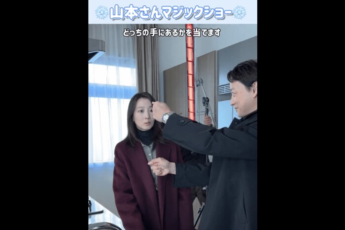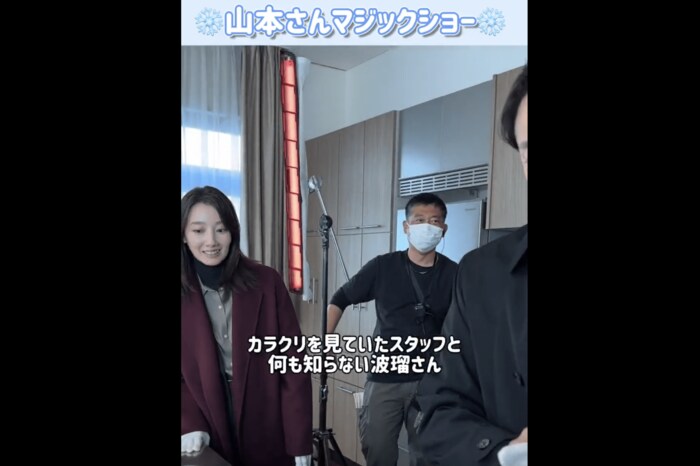 山本さんが波瑠さんにマジックを披露する動画も公開に。