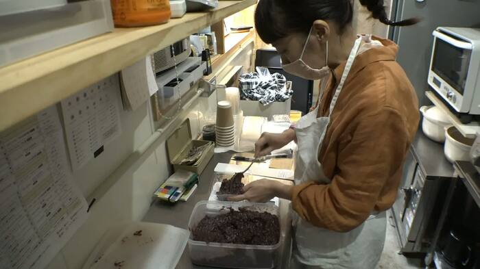 市販のものには、あんこを固めるための水飴や寒天が入っていることが多いが、彼女は、小豆と砂糖と水だけで作っている。「甘すぎて食べられなかったりということがあって、そこまであんこが大好きじゃなかった」彼女だからこそ、素朴な甘さを追い求めている。