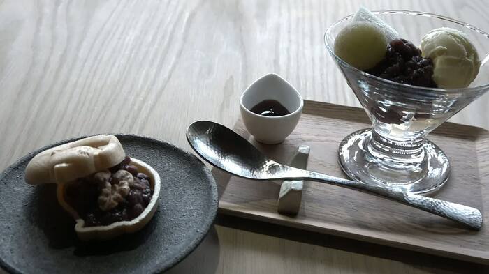 掃除や仕込みなど、手際よく準備を進め、朝10時に開店。メニューには、旬のフルーツをのせたあんみつや、塩のしょっぱさがアクセントの最中などがある。「おいしいですよ。甘すぎなくて、小豆の“豆感”もしっかりあって」と、訪れた客からも好評だ。