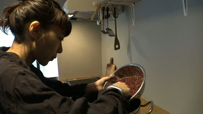 休みの日になると、彼女は店で出すあんこを作っていた。この日はおよそ10kg分のあんこを作るという。原料に使用する北海道産の小豆は、現地の農家に足を運び、仕入れを決めた。
