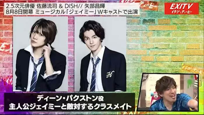 7月29日(木)放送回のゲストにはミュージカル「ジェイミー」より、2.5次元俳優・佐藤流司と、ダンスロックバンド・DISH//の矢部昌暉が登場した。