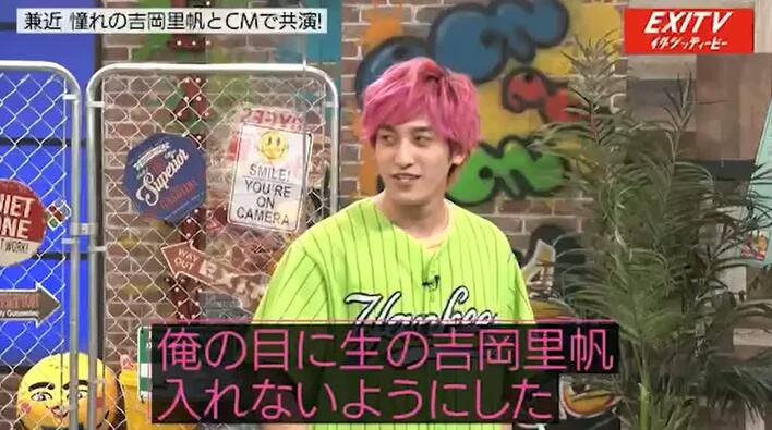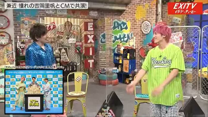 「いや~、びっくりした、横に(吉岡が)いるんだもん」と笑顔を見せる兼近だったが、CMの撮影中は吉岡とは「他のファンと公平性を保つために、ガマンしてひと言も話さなかった」と語り、りんたろー。から「マジ意味わかんない」とツッコまれる。