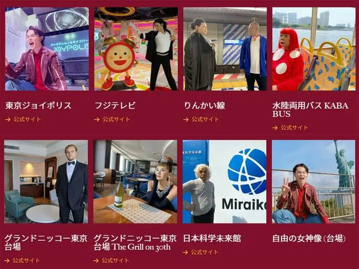 りんかい線のホームには、なんとブルース・ウィリスとマツコ・デラックスが夢の“共演”。グランドニッコー東京台場では、オードリー・ヘップバーンが朝食…ではなくワインを楽しんでいる。お台場エリアも、世界の有名人が“案内”することで、一味違った魅力を感じることができるだろう。