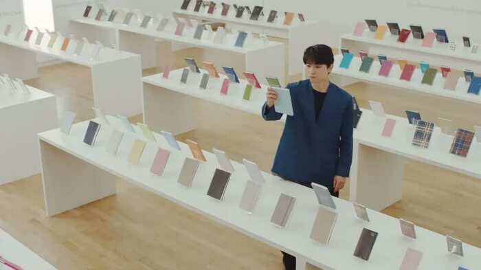 吉沢が2021年の手帳を選ぶという設定のCM。広い空間に並べられた285種類の色とりどりの手帳の中からお気に入りの1冊を探すというもの。