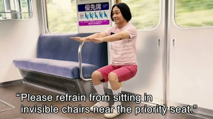 “Please refrain from sitting in invisible chairs near the priority seat.”