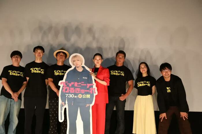 7月30日(金)、映画「ベイビーわるきゅーれ」 の初日舞台挨拶が行われ、主演の髙石あかり、本宮泰風、三元雅芸、秋谷百音、ラバーガール(飛永翼、大水洋介)、メガホンをとった阪元裕吾監督が登壇した。