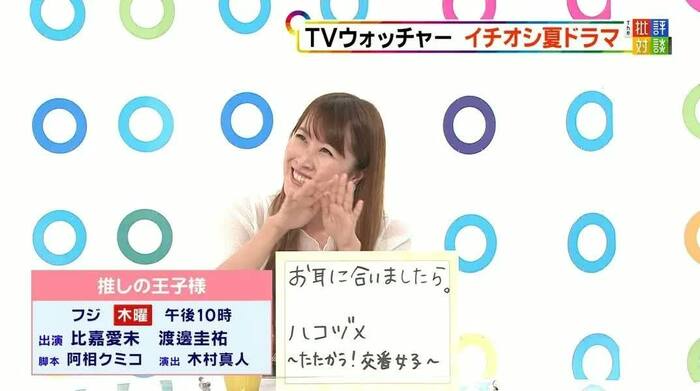新美アナ:はい。渡邊さんが演じる役が、少しポンコツで育てていくという楽しみは、私も共感できるところがある。“推しを応援したい”という。その育て欲というのを満たしてくれていて、かつ女性は女性で頑張り続けることの大切さみたいなことを…。