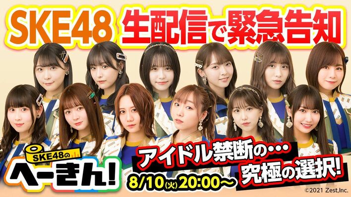 8月10日(火)20時より、公式YouTubeチャンネル「東海テレビB面」にて、『SKE48のへーきん!』続編告知のライブ配信が実施される。