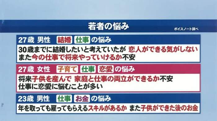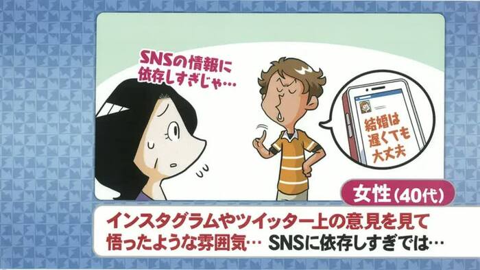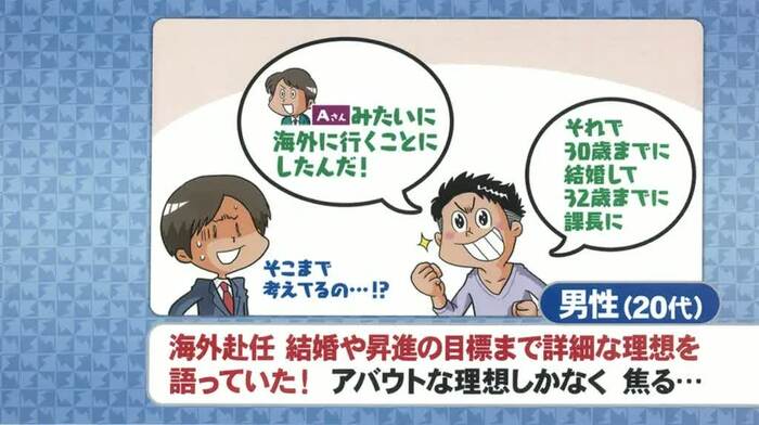 「27歳の息子が、人生設計についてSNSの意見に頼りすぎていて心配」(40代女性)、「大学時代の友人が憧れの先輩を目標に詳細な人生設計を立てて実行に移していて、焦った」(20代男性)などのお悩みも紹介された。