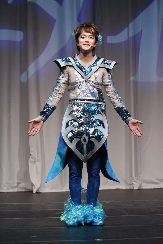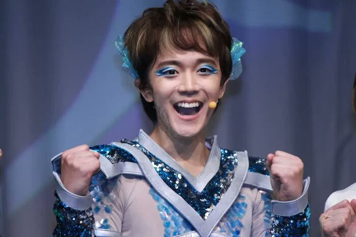 人魚役について聞かれると「僕が想像していたのは、ディズニーのマーメードであるアリエルだったので、『(衣装の)上が裸だったらどうしよう…』みたいに最初思ったんですけど、ビジュアル撮影の時にしっかりと上も用意されていたので、まずそこで一安心しました」と振り返った。