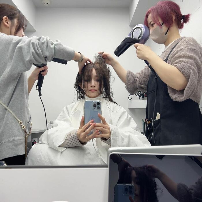 別の写真では、美容室で髪の毛を乾かしてもらっている、施術中の様子も。