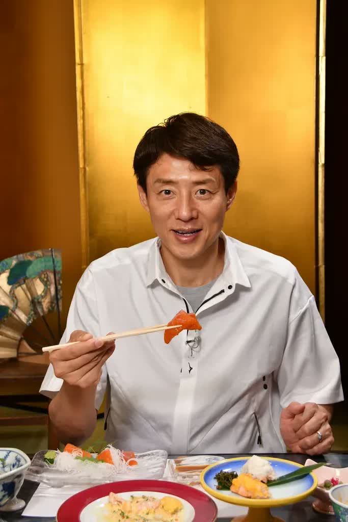 生臭さをまったく感じさせないヤシオマスのプレミアムな味を「濃厚ですね、噛んでいると味が出てきます」としっかりと味わっていた。