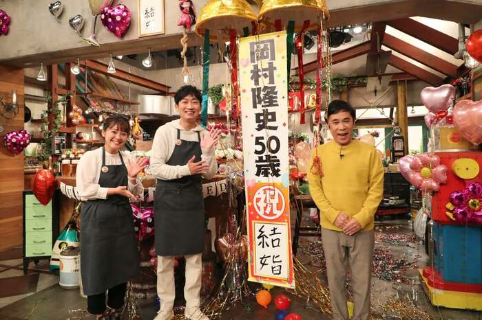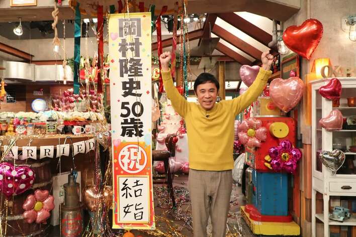 スタジオに用意されたくす玉を引っ張ると「岡村隆史50歳祝・結婚」と書かれた垂れ幕が出現した。岡村は「10月10日に入籍いたしました。本当になんて言いましょうか…滑り込みで結婚することができました。今日こうやって祝福していただいているんですけど、今日の番組でほとんど面白いこと言えないと思います(笑)。聞かれれば聞かれるほどおもんないエピソードしか出てこないですが…よろしくお願いいたします!」と、照れ気味に挨拶。