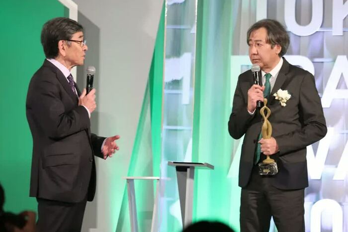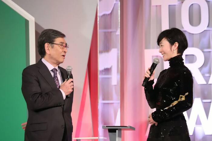 作品賞・単発ドラマ部門グランプリの表彰には、『教場』の脚本を務めた君塚良一、プロデューサーの髙石明彦(The icon)が登壇。