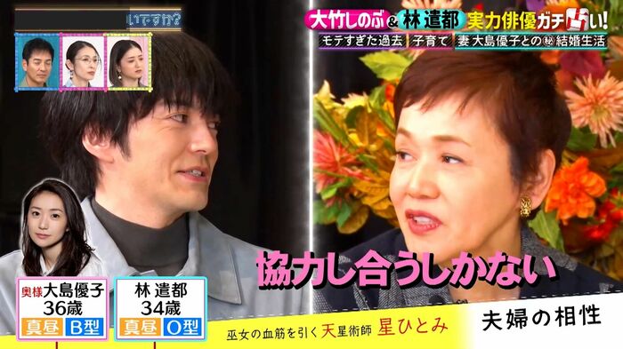 大竹さんも、子育てしていた頃を「大変でした。睡眠時間が減ったから、お母さん業としても女優さんとしても“満点”をとれないのが、ずっと続いていた」と振り返り、夫婦で「協力しあうしかない」と林さんにアドバイス。