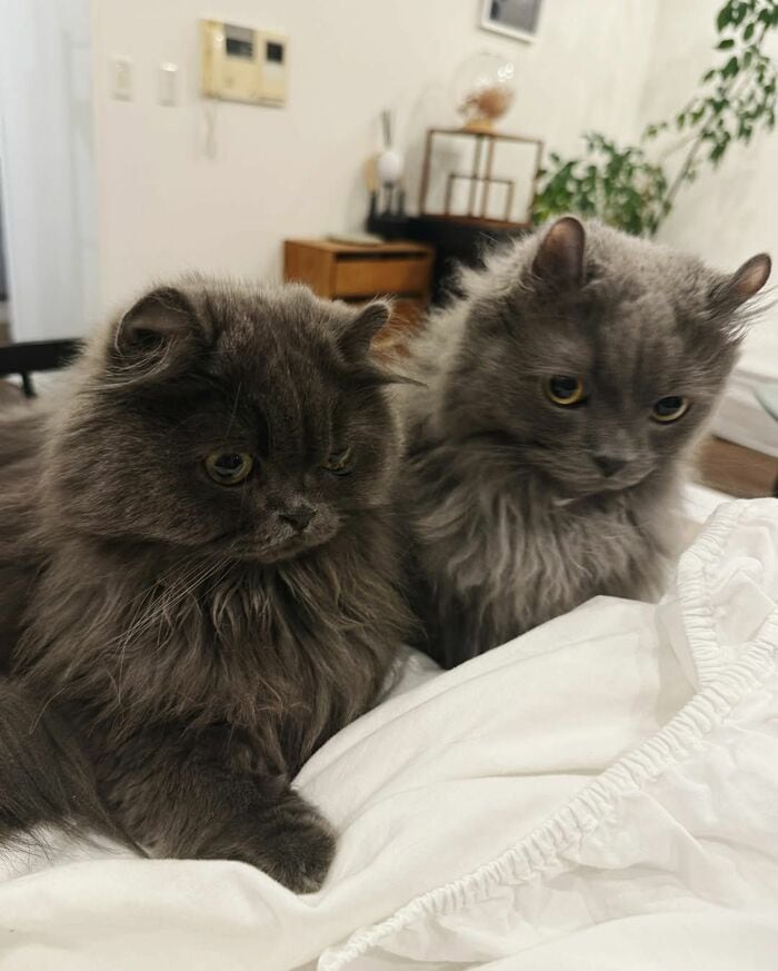 また、2匹のネコちゃんがどこか同じ一点を見つめている様子も公開。