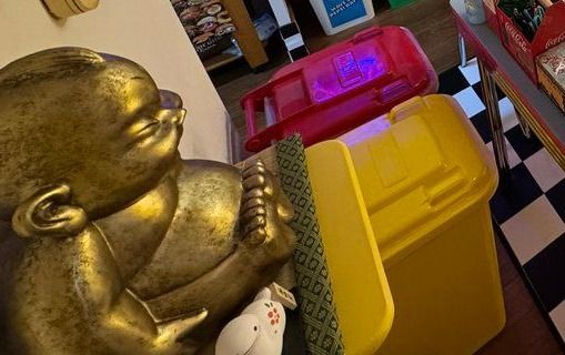 また、写真の手前には…ゴールドに輝く大阪のシンボルとして愛される「ビリケンさん」が置かれています。アントニーさんの母親による、遊び心満載な世界になっていますね。
