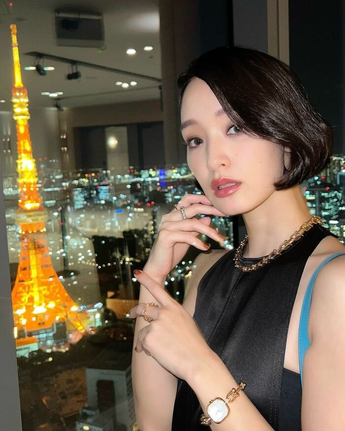 公開されたショットでは、黒のコートを羽織り、大人っぽい表情を浮かべた剛力さんの姿が!外の景色にはライトアップされた東京タワーが見えます。