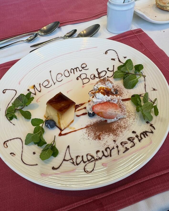 別の写真には、「welcome Baby」とメッセージが書かれたプレートも!