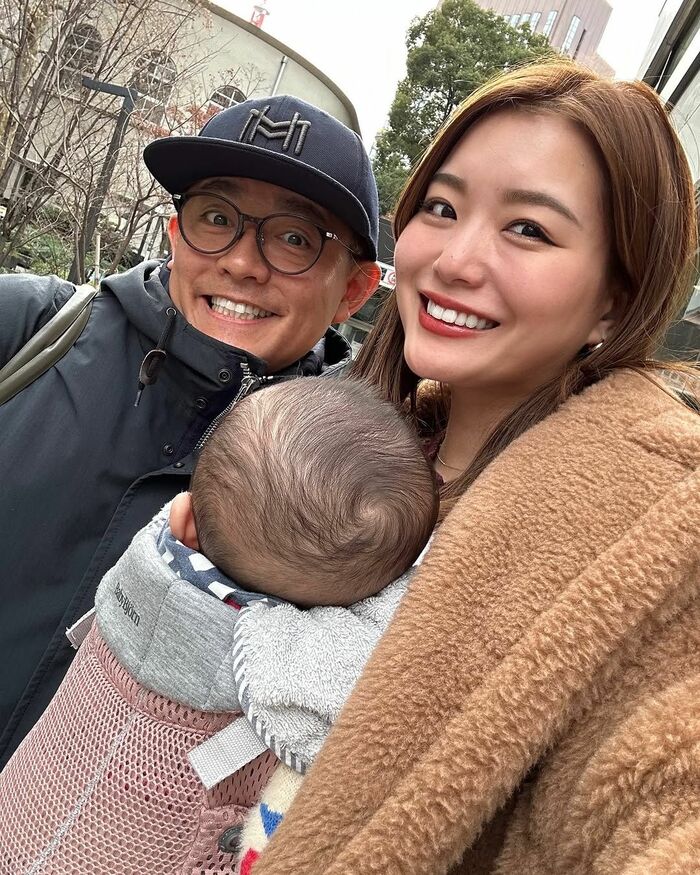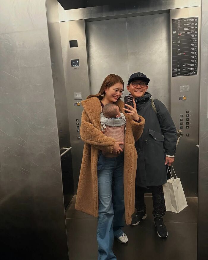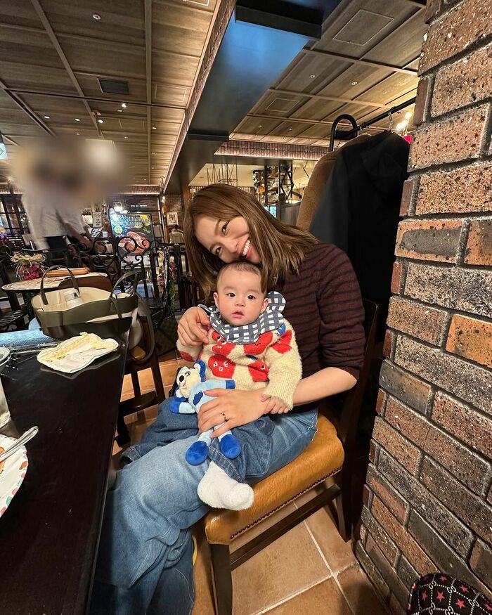 公開された写真には、“ベビバーグ”こと長男をブラウンのふわふわのコートで包んで抱っこしている蜂谷さんが、銀座の大通りを歩いている様子が!