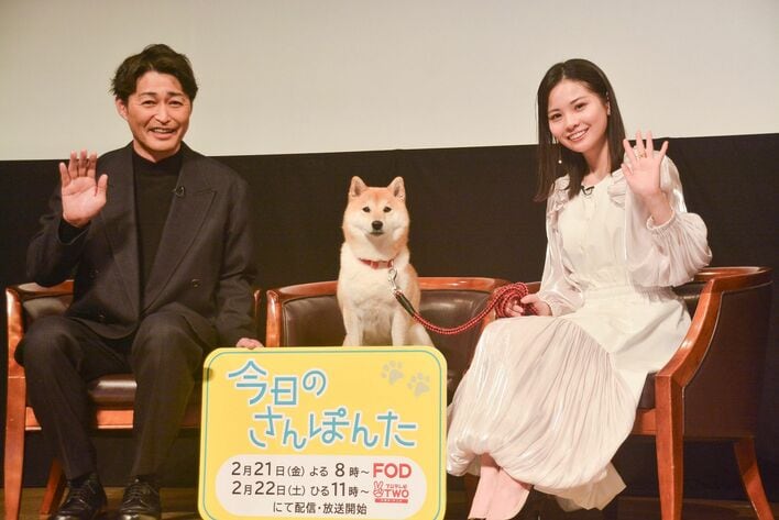 フジテレビが運営する動画配信サービスFODにて、2月21日より配信予定のドラマ『今日のさんぽんた』の完成発表イベントが2月19日に開催され、安田顕さん、新谷ゆづみさん、柴犬・のこが登壇しました。