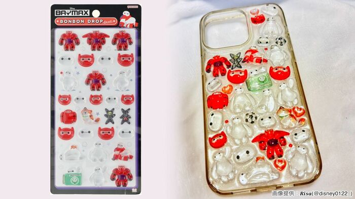 ディズニーキャラクターの「ベイマックス」を使ったデコレーションも!隙間なく並んでいますが、作業工程を聞いてみると、一度台紙ごと切り離したシールを仮置きしてから貼り進めていったんだそう。
