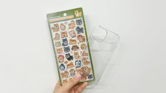 シールの台紙は透明なので、スマホケースの上から重ねるとデザインの確認ができ、キレイに貼ることができますよ!