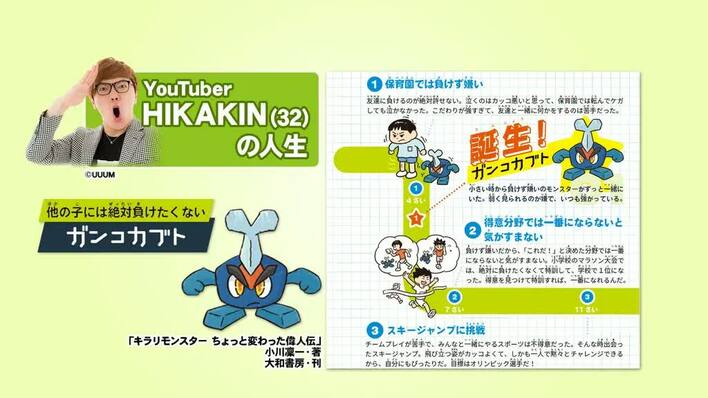 「キラリモンスター ちょっと変わった偉人伝」という書籍に登場する、YouTuberのHIKAKINの子供時代も紹介された。