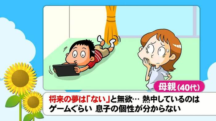 紹介されたのは、「中学生の娘は夢に向かって現実的に進路を考えているが、小5の息子は夢がないという。熱中しているのはゲームだけで、彼の個性がわからず不安」という40代女性のお悩み。