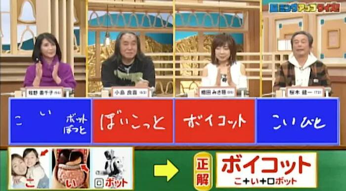 正解は「ボイコット(こ+い+ロボット)」。小島と織田の2人が正解!