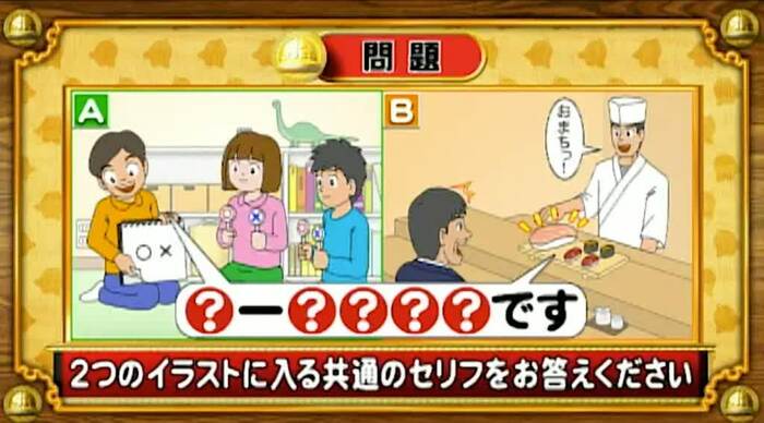 最後は、共通セリフ問題。次の2つのイラストに入る共通のセリフを答えよ。