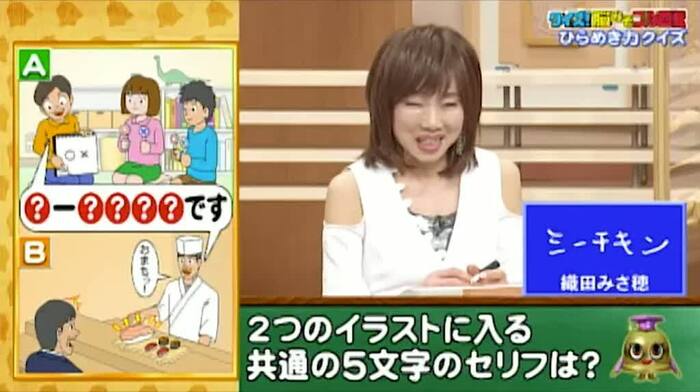 織田の答えは、「シーチキン」。もしかして食べ物のことしか頭に浮かばなかった?