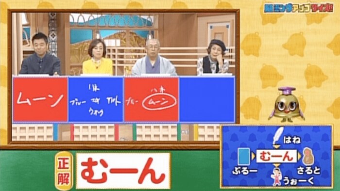 正解は「むーん(ブルームーン・ハネムーン・ムーンサルト・ムーンウォーク)」。